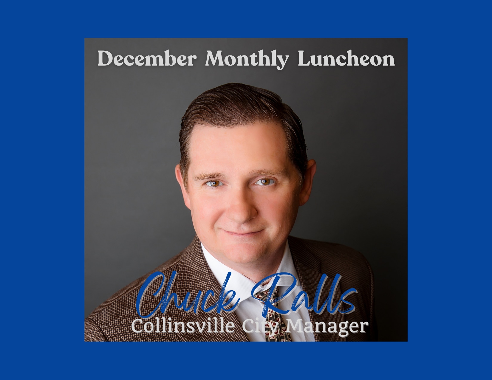We invite you to attend our December Monthly Luncheon. Chuck Ralls, City of Collinsville City Manager, will be our guest speaker. We’re thrilled to welcome Collinsville’s City Manager, Chuck Ralls, as our guest speaker. Chuck will be providing an important update on what’s been happening in our community and sharing insights into upcoming developments and initiatives in Collinsville. The RSVP deadline is Tuesday, December 3rd. Don't forget to drop a business card into the drawing for a chance to win a door prize! We look forward to seeing you there!